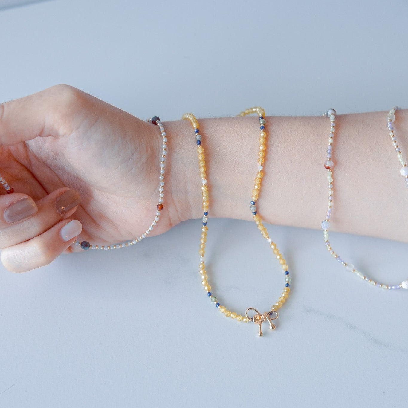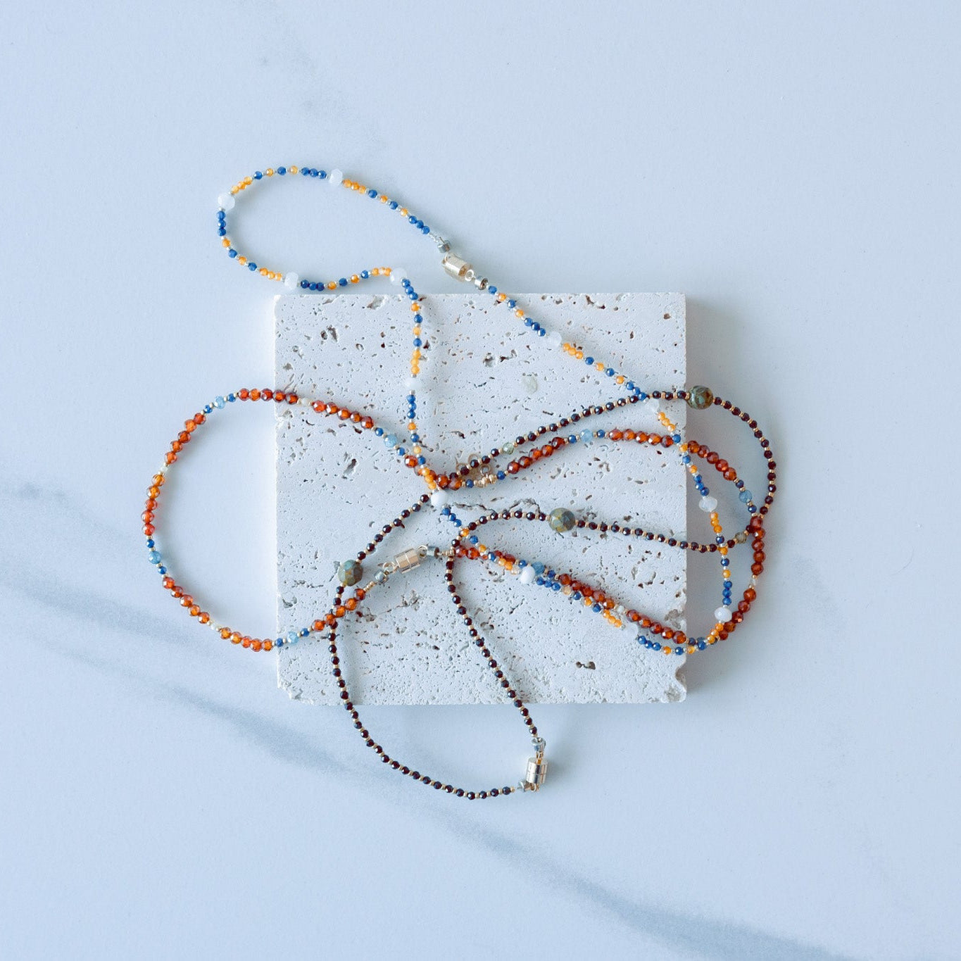Each Made is designed and handcrafted by us, bringing you classy jewelry with a touch of personality. All designs are available in limited quantities as they are made with selection of beads & stones sourced from our travels, making our collections truly special and unique.