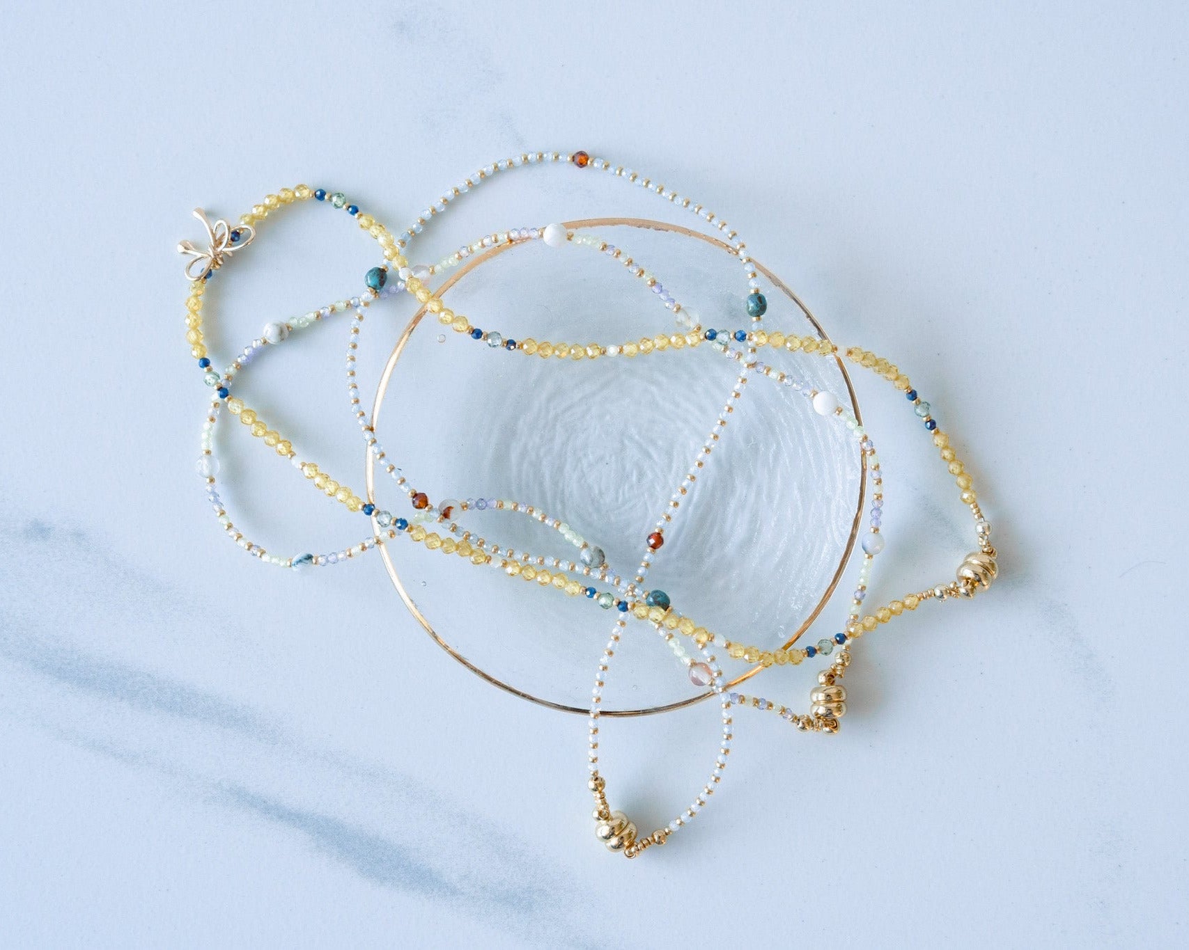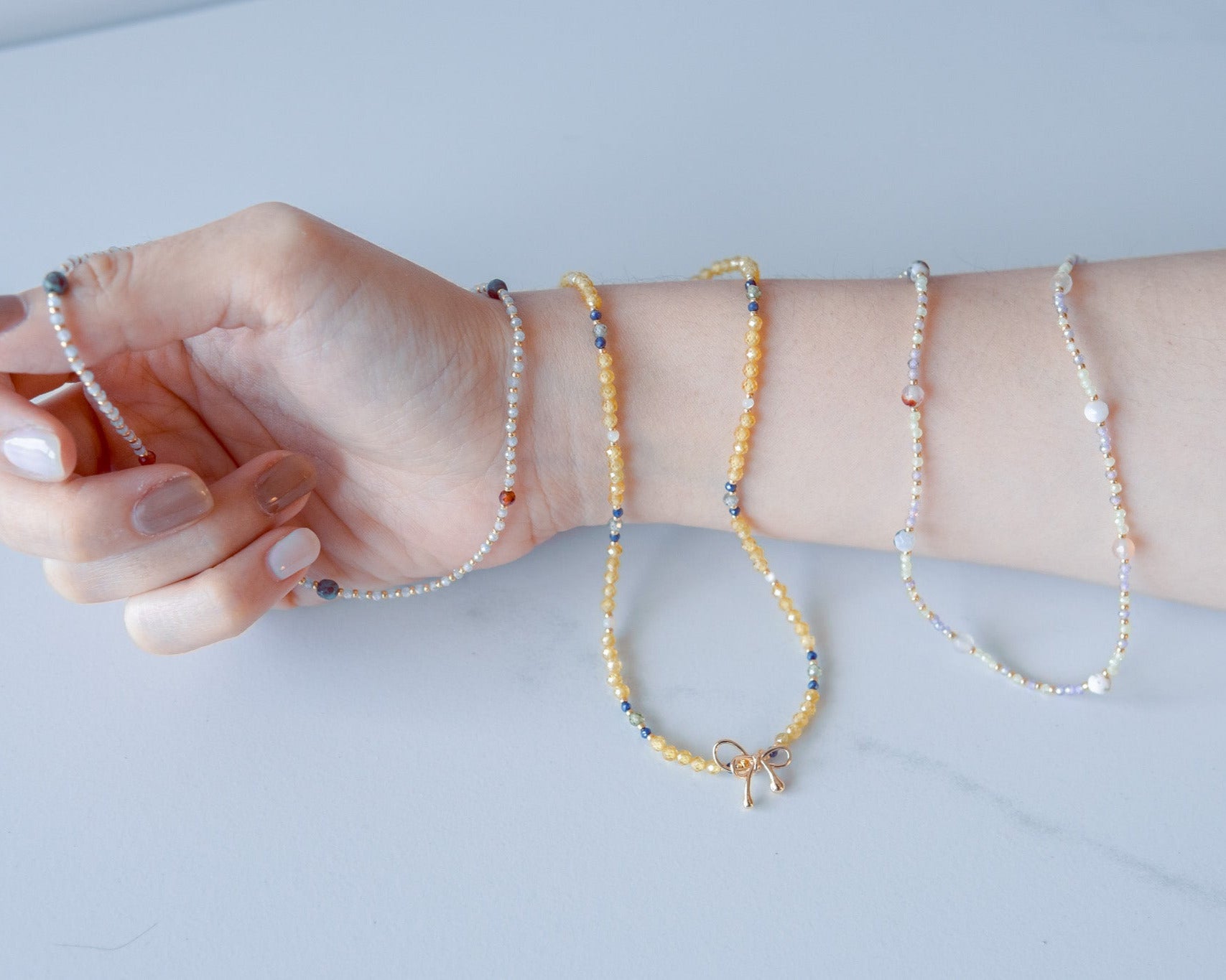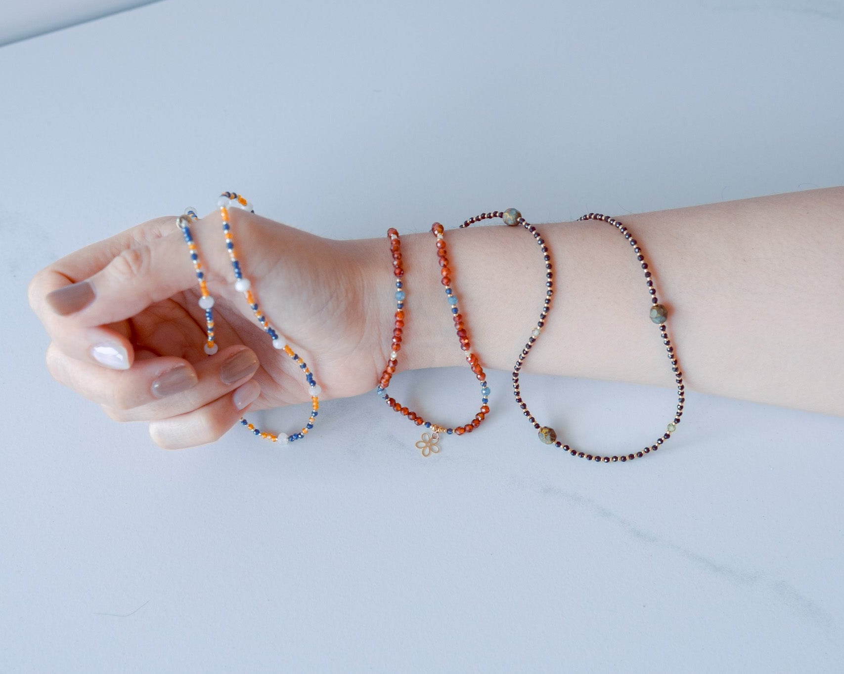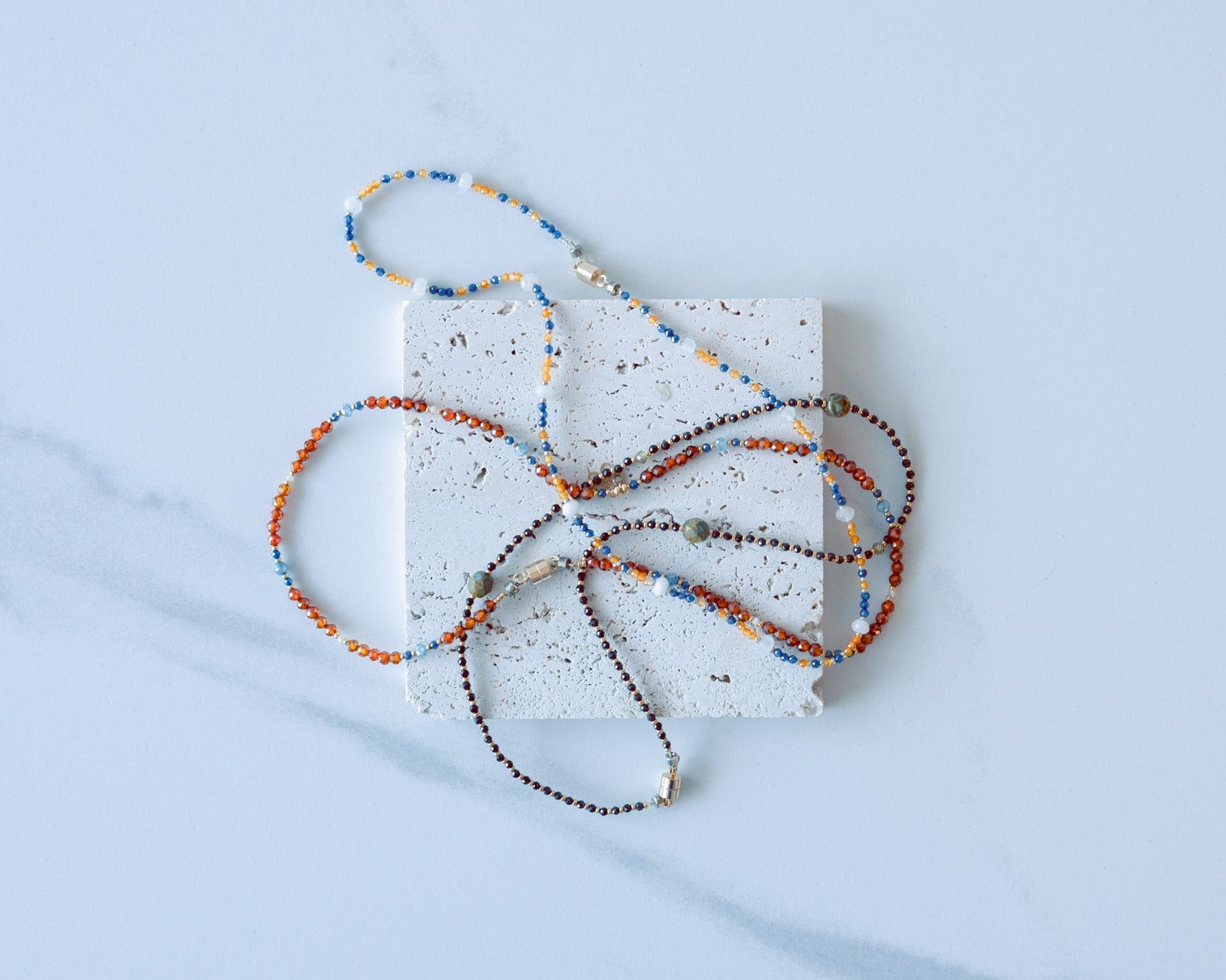 Each Made is designed and handcrafted by us, bringing you classy jewelry with a touch of personality. All designs are available in limited quantities as they are made with selection of beads & stones sourced from our travels, making our collections truly special and unique.