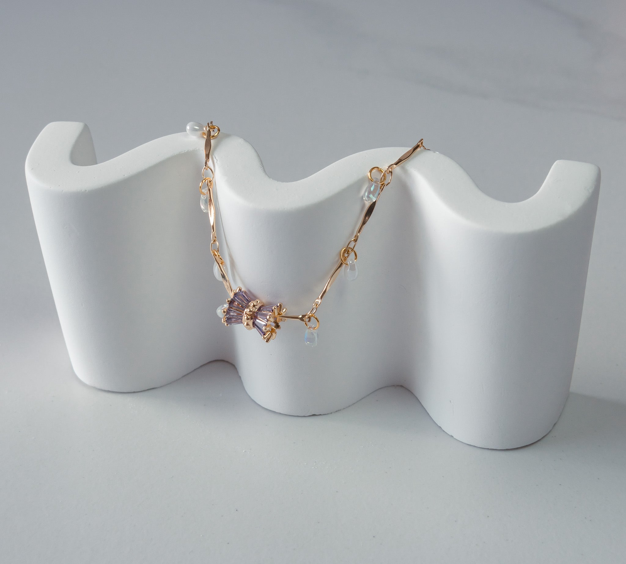 Drawing inspiration from Foxglove flowers, this necklace features teardrop glass beads and a vibrant pendant that captures the beauty of its bell-like bloom.